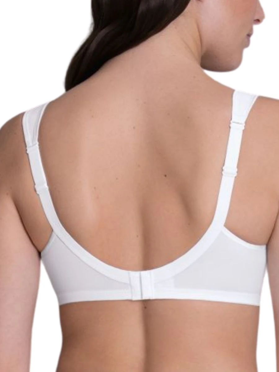 Anita Clara Comfort Bra, available in White. This full cup, non wired bra is designed with comfort in mind. The wide comfort straps are fully adjustable and provide firm support for the larger bust.