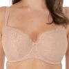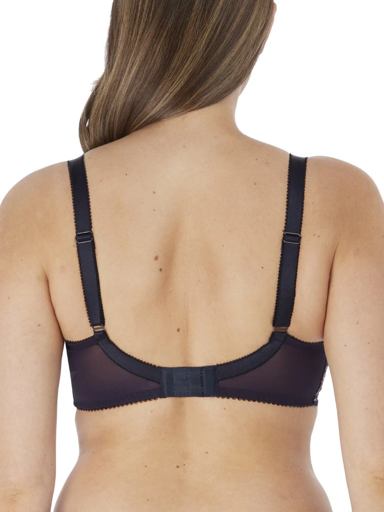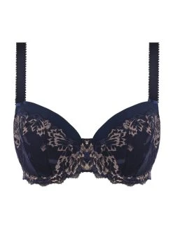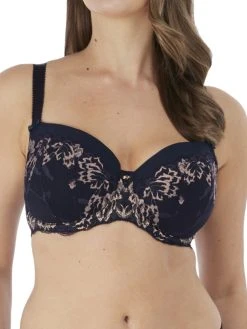 Fantasie Aubree Half Cup bra in classic Navy. Featuring lightly padded cups for everyday support with feminine floral lace. Finished with a tear drop charm on the centre front.