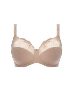 The Jocelyn range by Fantasie, based on the best-selling Fantasie Jacqueline range. Featuring a three-piece cup in Natural Beige, wide wired bra for additional comfort and support. The Nouveau inspired Austrian embroidery adorns the top cup. The concealed seams in the inner cup are combined with soft seamless spot design fabric. Its finished with embroidery on the shoulder straps with a metallic trim and diamante at the centre front.