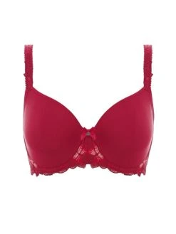 Fantasie Leona Rebecca Spacer bra in Red. Offering complete comfort and optimal support, the moulded cups provide excellent shaping and coverage. The cups don’t add volume, perfect under t-shirts. Complete with embroidered trims.