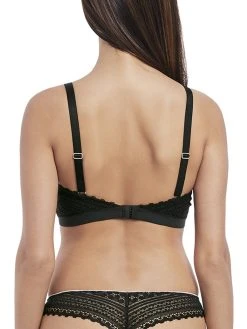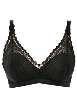 Freya Daisy Lace bralette in Noir. This non-wired bralette has a triangle shape with high apex style. Complete with a hook and eye fastening for support. The bow and silver triangle embellishment adds a cute feminine touch. A comfortable sweet bralette perfect for everyday wear.