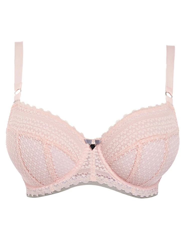 Freya Daisy Lace Balcony Half Cup bra in colour Blush is a perfect bra for everyday comfort. This charming padded bra features multi part cups which provides support and a natural shape to the bust. The bra boasts a stunning geometric lace with adjustable satin straps and a cute satin bow in the centre. A romantically chic bra which is perfect for your everyday lingerie collection!