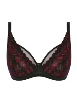 Gorgeous high apex bra by Freya. Make a statement with the Festival Vibe in Black. Featuring a geometric three-tone lace design that offers a plunge frame. Excellent support and fit.