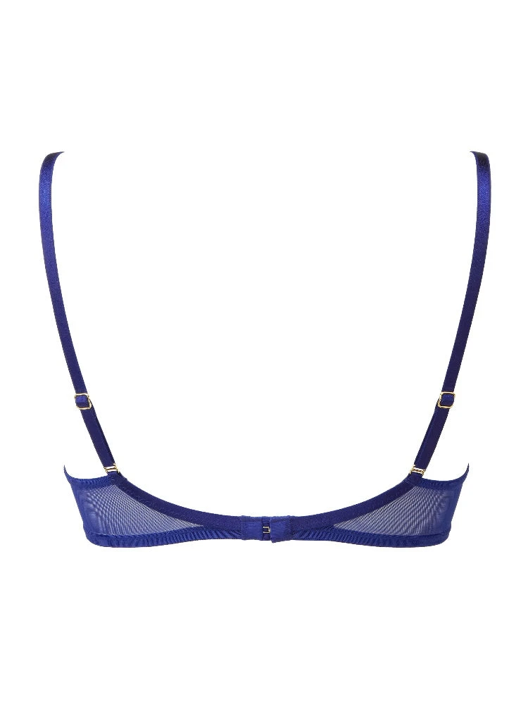 Encore High Apex Bra from Gossard, in Imperial Blue. This underwired high apex bra features lightly padded cups to lift and boost your natural cleavage. The high apex style creates a plunging neckline over the moulded cups.