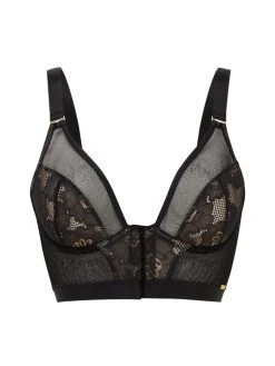 Femme Bralette from Gossard, in Black. This front fastening features underwired, non padded cups to support and enhance your natural cleavage. The side sling and the thick underband support the breast and prevent the longline style rolling up.