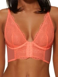 Fashioned from beautiful corded stretch lace is Gossard’s Superboost Lace Deep V Bralette in Neon Coral.
