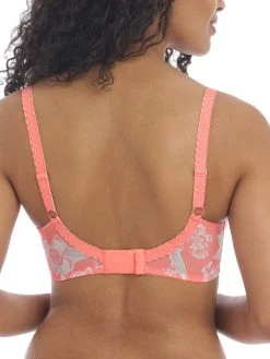 Fashioned from beautiful corded stretch lace is Gossard’s Superboost Lace Deep V Bralette in Neon Coral.