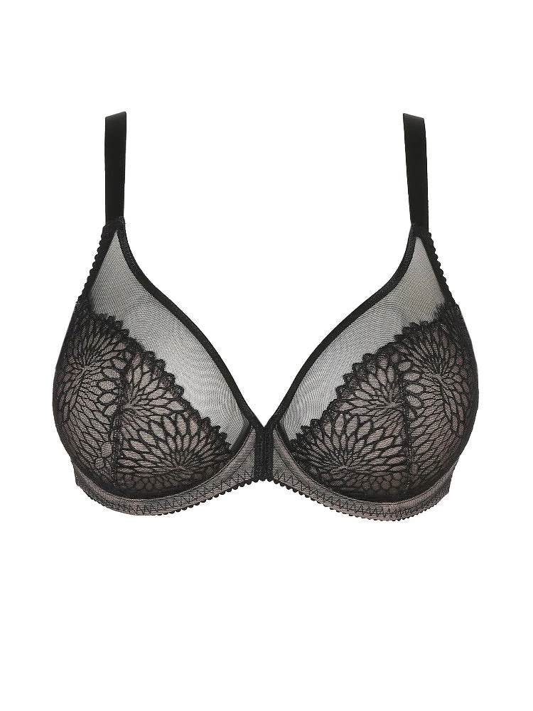 Primadonna Sophora collection, featuring the Deep Plunge Balcony bra. A luxurious feminine bra with a tattoo effect lace design. The embroidery is low to create the illusion of a plunge neckline.
