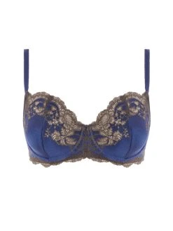 Wacoal Lace Affair Balcony Bra – Blue Print/Chocolate Brown